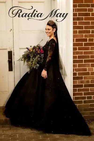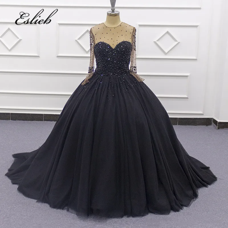 Eslieb Custom Made Black Wedding Dress Long Sleeves Lace Up Back