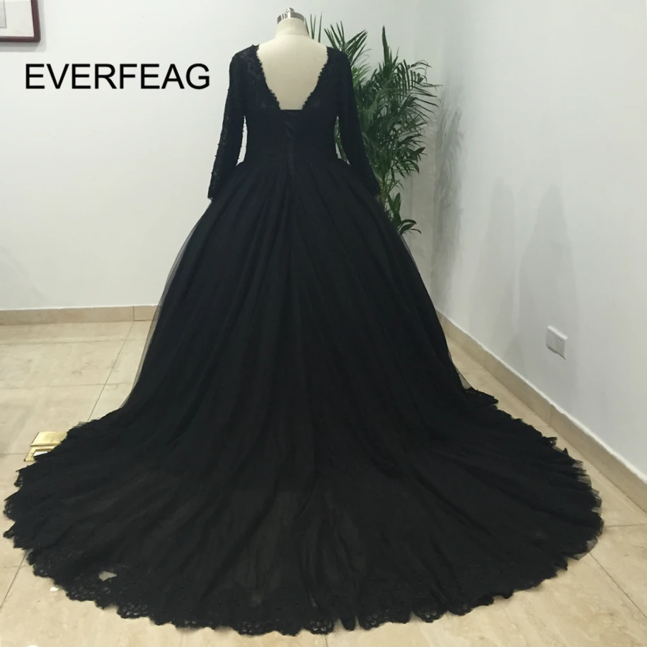 Black Long Sleeves Ball Gown Gothic Wedding Dress 2020 Lace