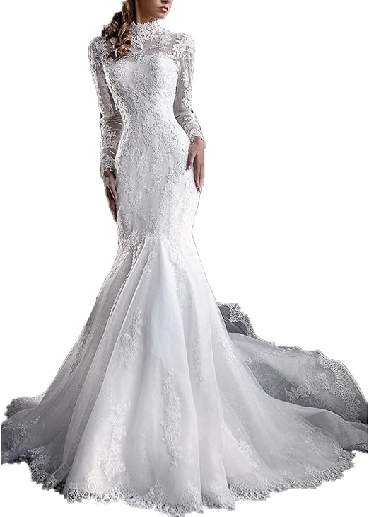 Yuxin Women S High Neck Lace Mermaid Wedding Dress 2020 Elegant