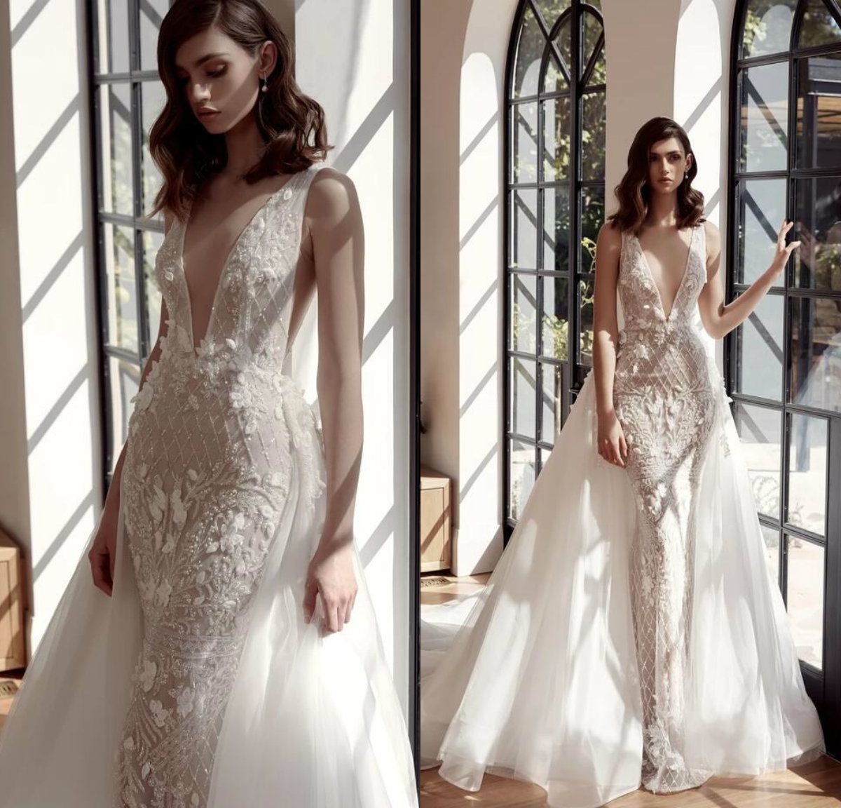 2020 Overskirt Wedding Dresses With Detachable Train Lace 3d