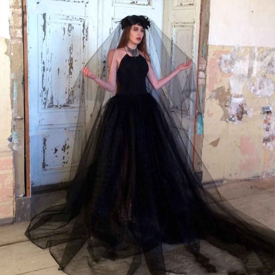 Sleeping Beauty Black Wedding Dresses Gothic Fancy Tulle Halter