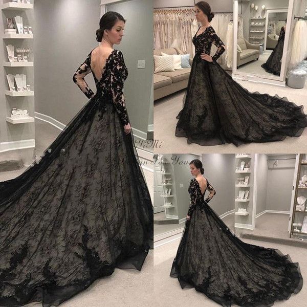 Discount Black Wedding Dress 2020 Long Sleeve Sexy Bridal Dresses