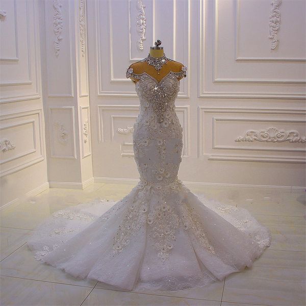2020 Luxury African Wedding Dress Mermaid High Neck Lace Up