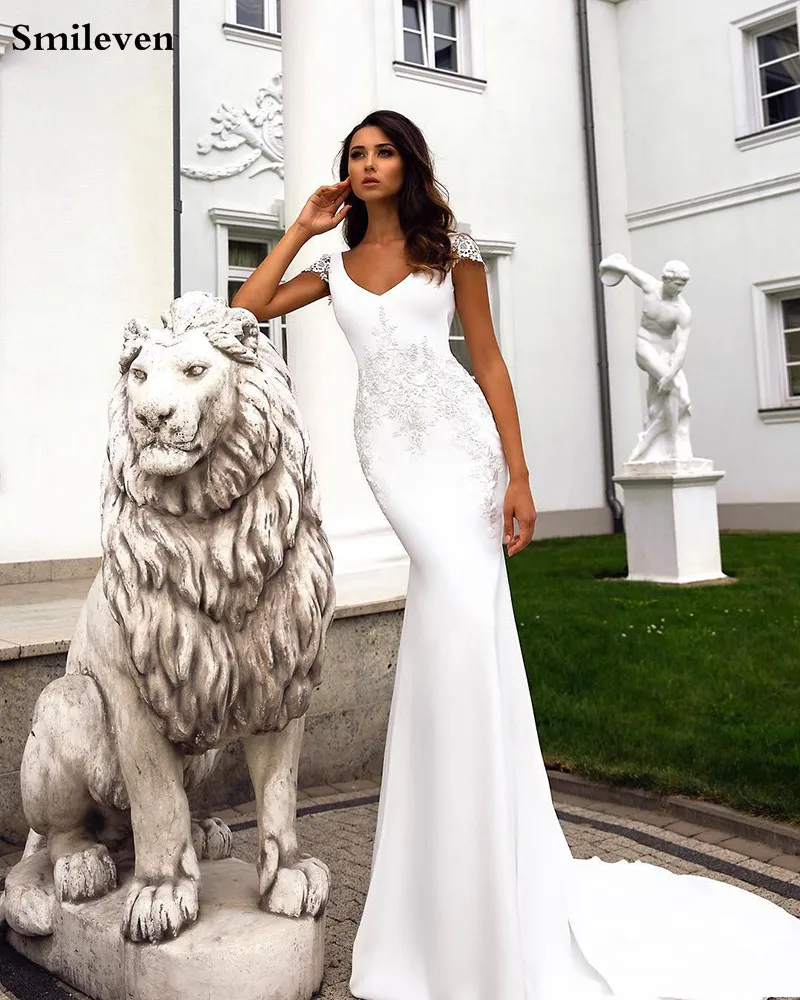 Smileven V Neck Mermaid Wedding Dress 2020 Lace Boho Bride Dresses