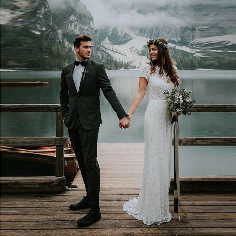 Bohemian Wedding Dress 2020 Cap Sleeves Lace Chic Bridal Gowns