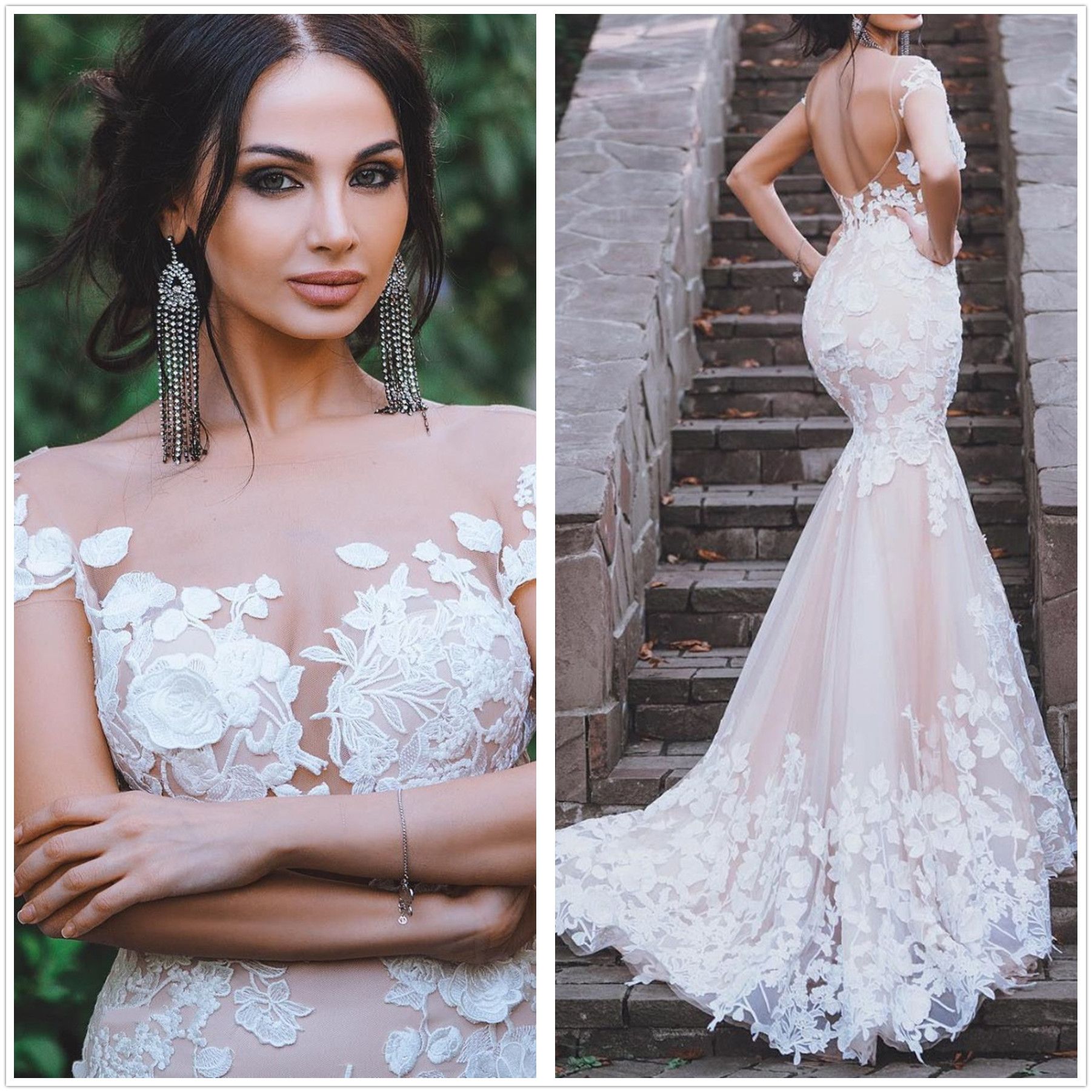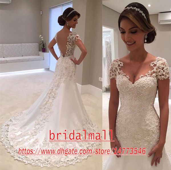 Sheer Cap Sleeves Lace Mermaid Wedding Dresses 2020 Tulle Applique
