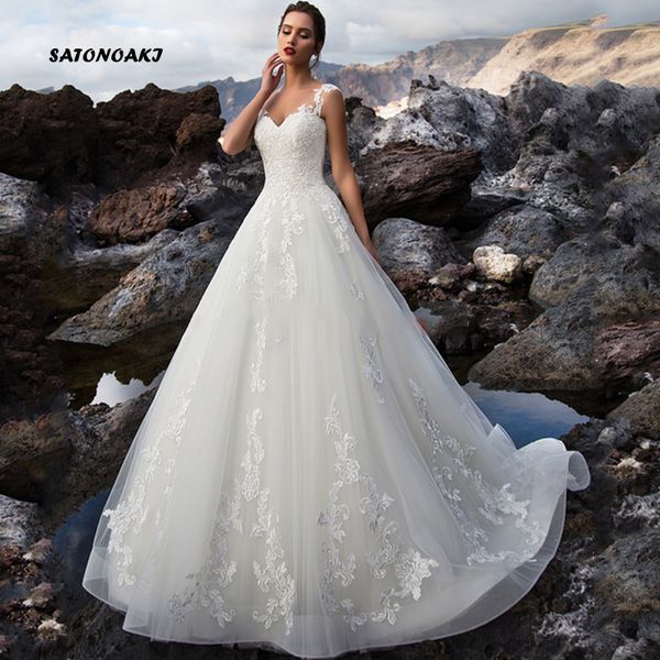 Vestido De Noiva 2020 Lace Sheer Neck A Line Wedding Dresses Cap