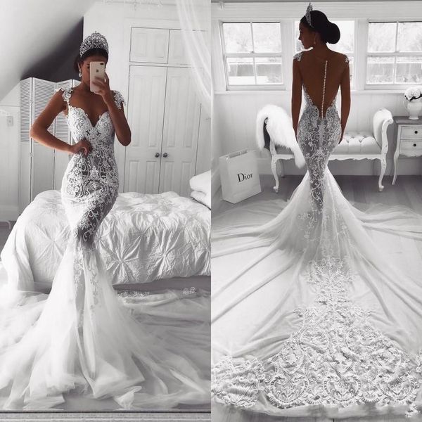 2020 Arabic New Arrival Mermaid Wedding Dresses Sweetheart Cap