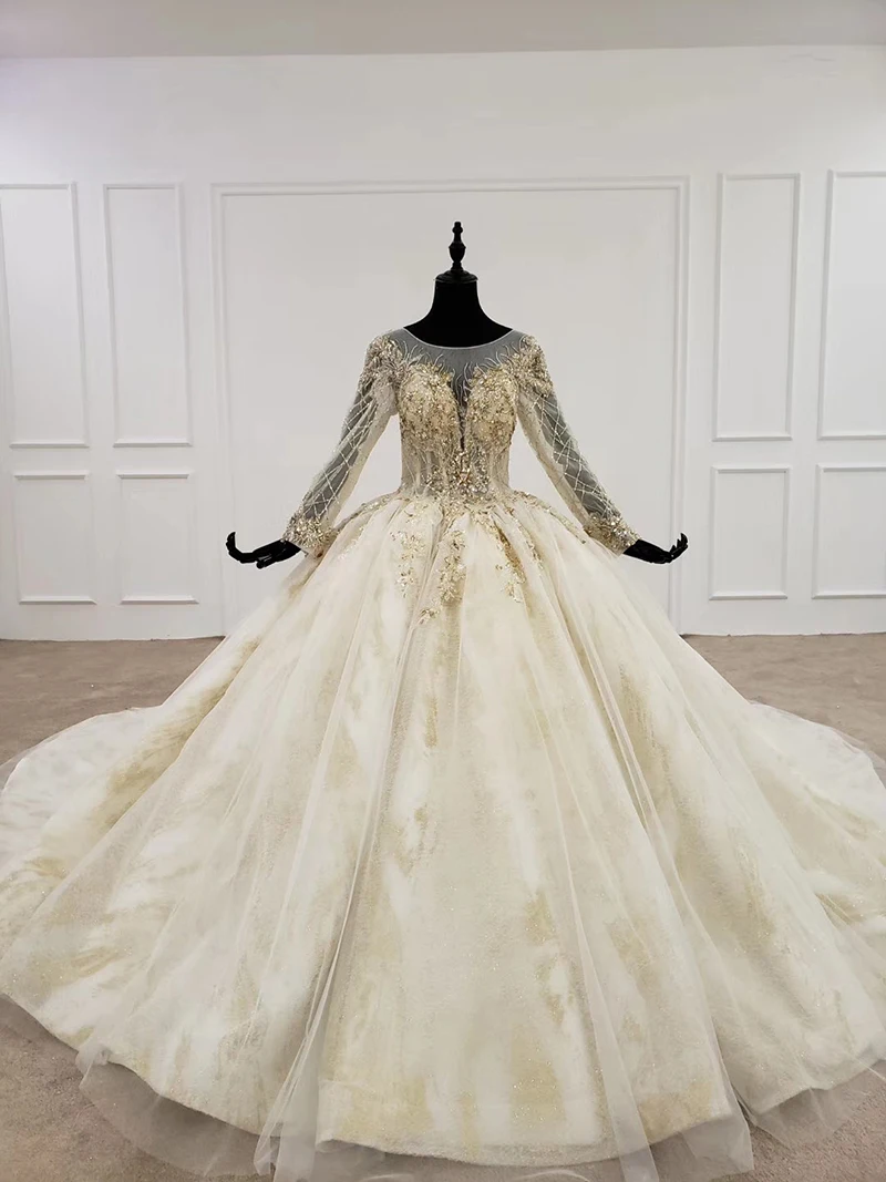 Htl1244 2020 Ball Gown Wedding Dresses O Neck Long Sleeve Sequin