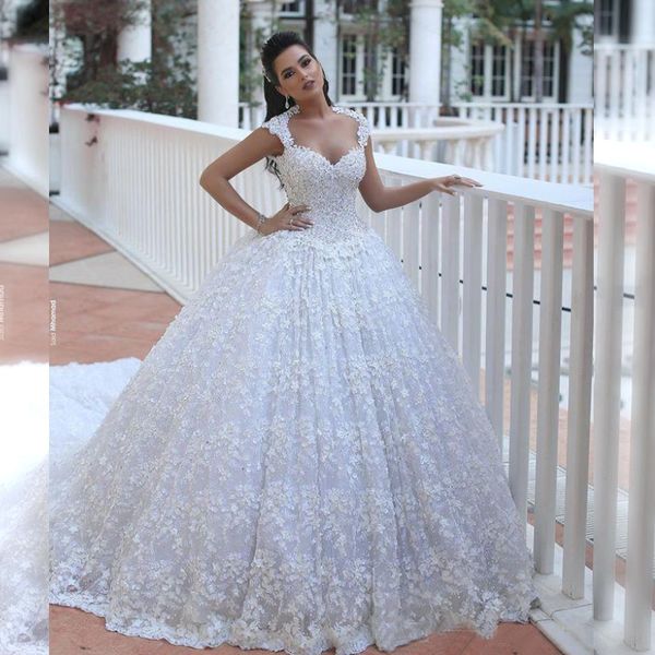 2020 Royal Wedding Gown With Beaded Floral Lace Patterns Narsbridal