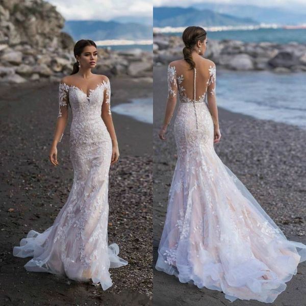 2020 Naviblue Wedding Dresses Long Sleeves Mermaid Bridal Gowns