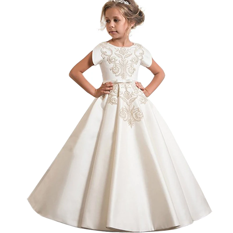 2020 Embroidery Flower Girls Dress Long Ball Gown Evening Dress