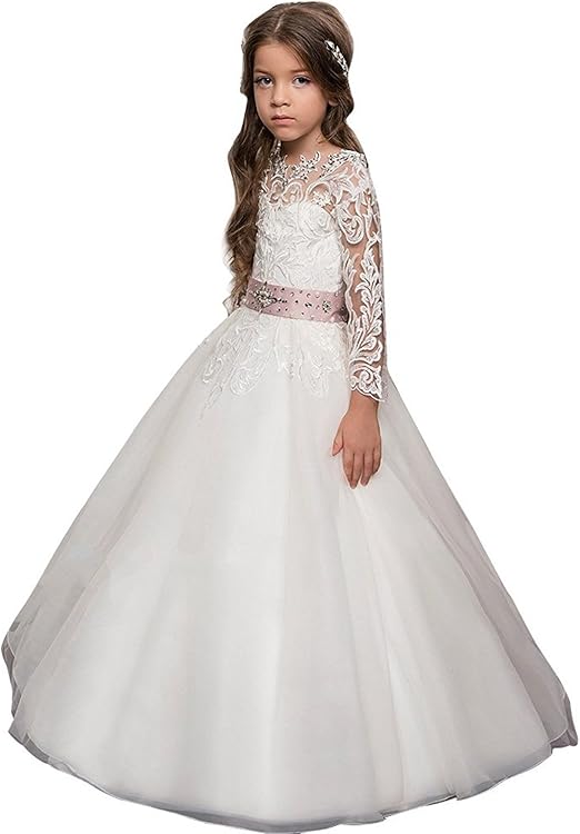 Amazon Com Hygljl Lace Long Sleeves Girls 2020 White First