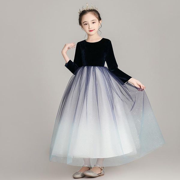 2020 Flower Girls Long Dress Kids Girl Sequin Tulle Runway Dresses