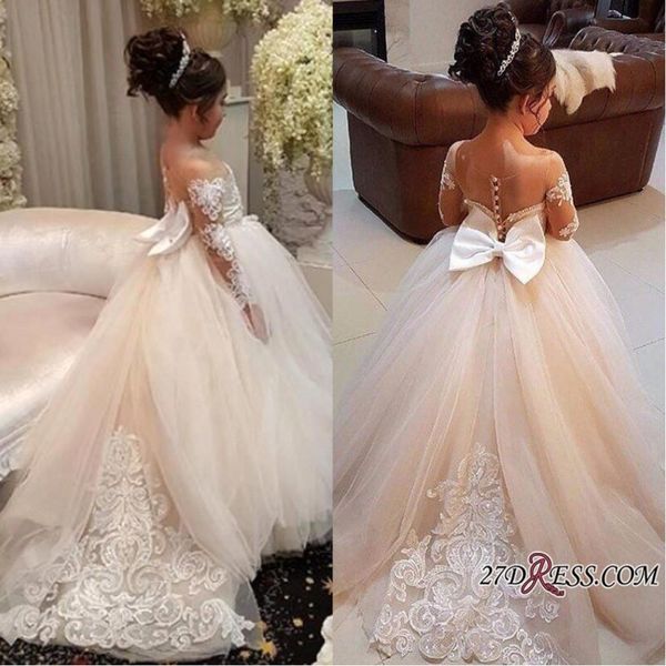 Flower Girls Dresses 2020 Crew Neck Long Sleeve Ball Gown Little