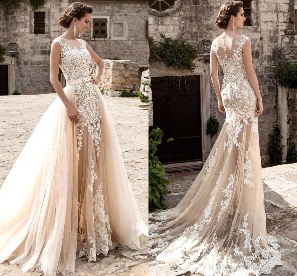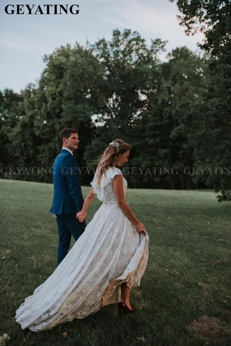 Rustic Lace Boho Champagne Country Style Wedding Dress 2020