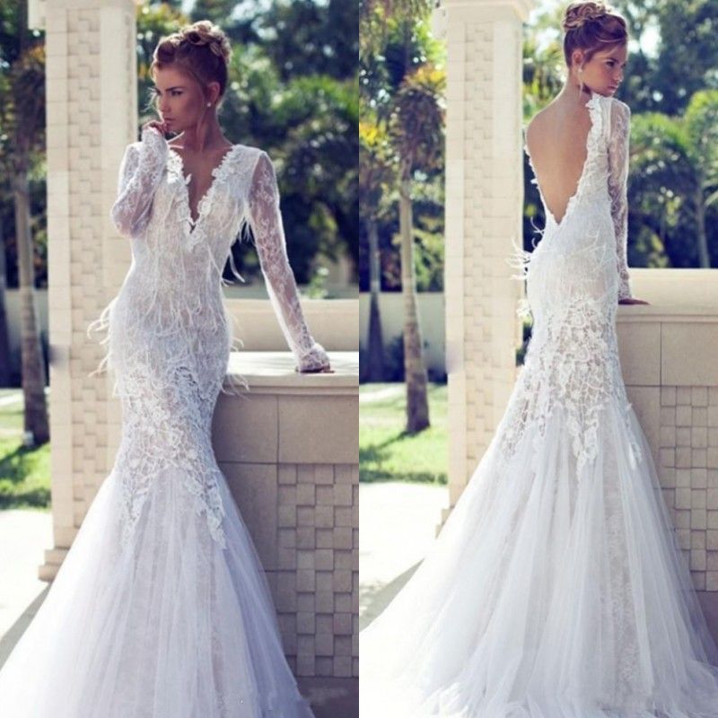 2020 Gorgeous Wedding Dresses Deep V Neck Mermaid Backless Feather