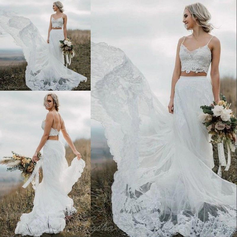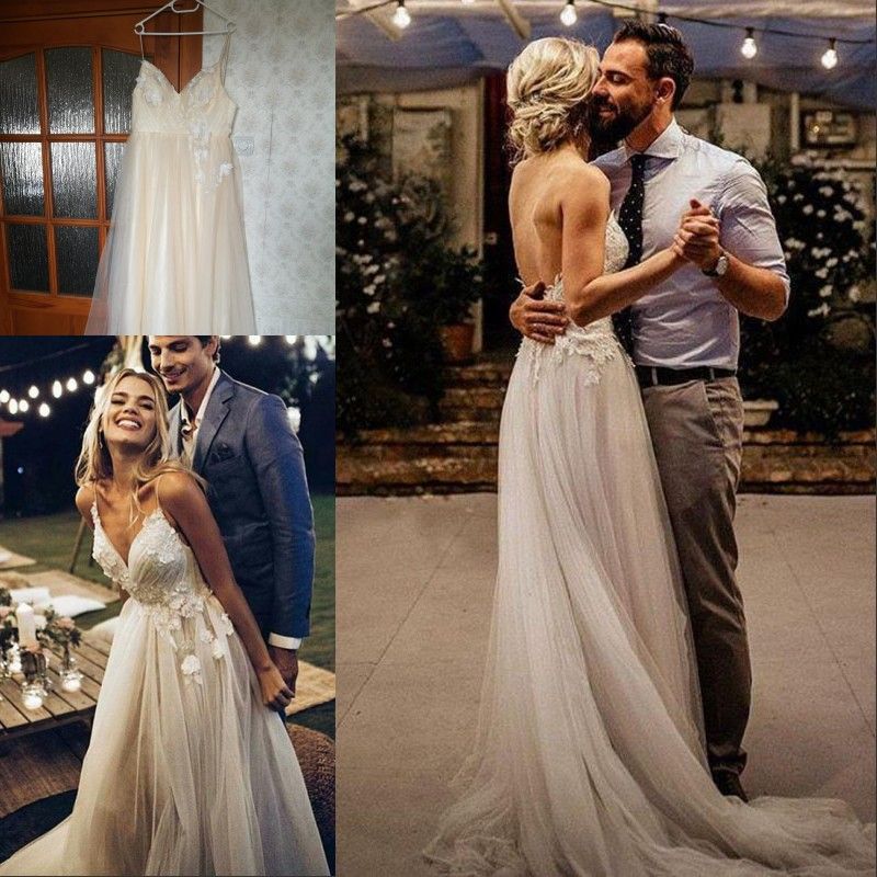 Vestido De Noiva 2020 A Line Boho Wedding Dresses Spaghetti Straps